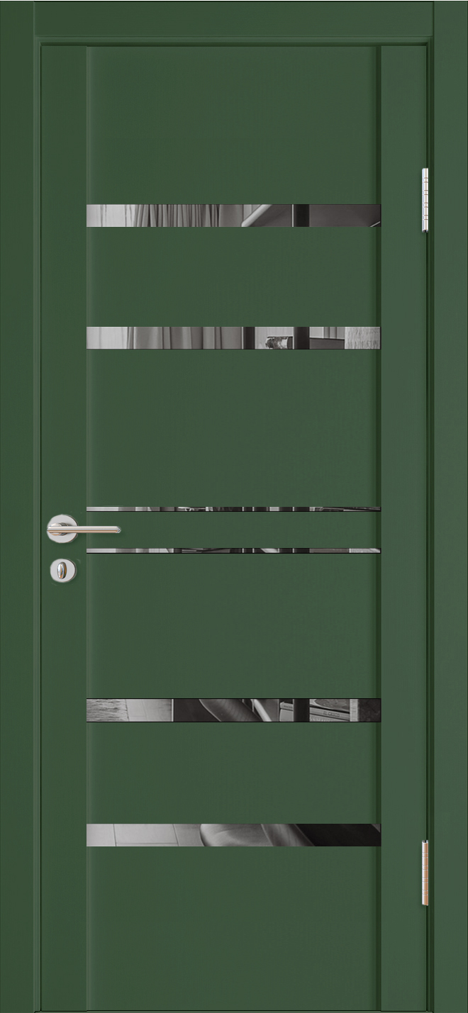Элегантная последовательность чередующихся поверхностей и стеклянных линий создаёт изысканную игру света. Отражение деталей интерьера в стеклах двери придают элегантности помещениям современного европейского или скандинавского стиля, для которых характерны легкие, тонкие и изящные детали.